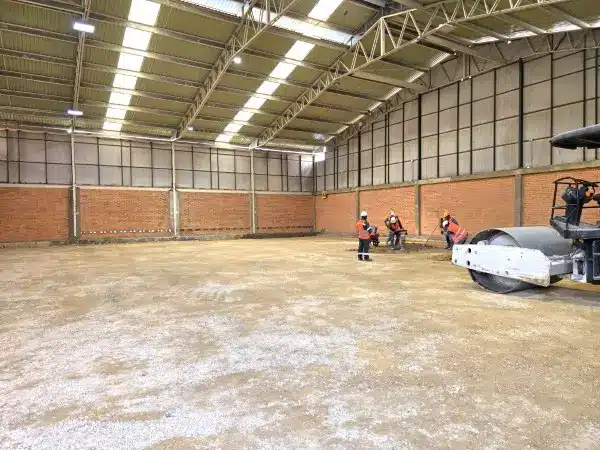 Diseño estructural, cimentación y fundición de pisos de alta resistencia para optimización de áreas logísticas. Cimentación compactada lista para fundir placa en concreto MR43